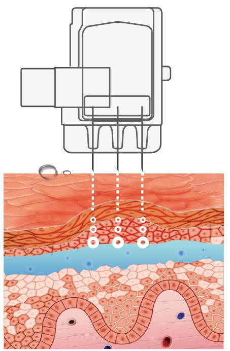 不同醫生使用水光槍時會用到不同的深度,原因是皮膚表面保濕效果會比較良好,但如果打得太淺層皮膚很難儲存很多營養精華,因此不同醫生會使用0.8到1.4mm不等,視乎他們使用的精華。