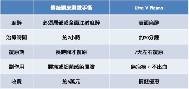 Ultra V Plasma Ultra V Plasma半永久雙眼皮・眼簾緊緻・祛疣祛癦新技術 成本低,易操作!雙眼皮、緊緻眼簾、祛疣脫癦通通搞掂! 媲美CO2激光效果,卻只需7日修復期!能量自行調節,創傷小,更安全! 一文看清Ultra V Plasma | 聯絡我們推薦值得信任的診所及美容院給你,合適的Blogger/Vlogger及其他人選更可FREE享用療程。診所或美容院歡迎聯絡我們,提供更多專業營商及療效建議-92255546 目錄: 1 - Ultra V Plasma 療程資訊 1.1 Plasma(等離子)治療是甚麼? 1.2 Ultra V Plasma 療程的優點 1.3 Ultra V 的發展與權韓真醫生簡介 2 - Ultra V Plasma 療程操作流程 2.1 Ultra V Plasma 治療範圍 2.2 Ultra V Plasma 治療原理 2.3 Ultra V Plasma 治療效果 2.4 治療注意事項 3 - Ultra V Plasma 療程與其他療程比較 3.1 與CO2激光療程比較 3.2 與傳統眼皮緊緻手術比較 4 - Ultra V Plasma 治療之市場資訊 4.1 為何選擇我們 4.2 小冊子及宣傳海報 1.1 Plasma(等離子)治療是甚麼? 等離子(Plasma)是自由電子和帶電離子為主要成分的物質形態,等離子通常被視為物質除固態、液態、氣態外存在的第四種形態。 儀器透過電能等離子化附近空氣,在極短距離針對最表層的皮膚,非常安全。等離子進入皮膚後,能瞬間加熱及凝固所選擇特定皮膚組織,而治療範圍以外的組織不會受影響。這個過程可改善皮膚和真皮的膠原纖維增生。 1.2 ultra V plasma 療程的優點 筆型設計既輕便又易於控制。 易於使用和操作,具有與CO2激光相同的功能,並有更短的修復期 筆型設計易於使用 低功耗低頻 較少副作用 1.3 ultra V 的發展與權韓真醫生簡介 Ultra V是韓國著名抗衰老品牌,一直風靡香港及亞洲等地。 品牌創辦人權韓真醫生Dr. Kwon是韓國頂尖的抗衰老美容界權威,更是首批創立使用蛋白綫作提昇緊緻的專家。 權醫生在過去10多年間不斷走遍世界各地,為多達60個城市提供材料儀器及專業技術培訓醫生, 致力將Ultra V的醫學技術引領到全世界,亦將世界各地抗衰老的最新科技引入到品牌發展及研發。 Ultra V 廠也由10年前專注發展線材到今天由日用護膚品到大型醫美儀器都有推廣出市場,包括每1秒賣出15支的黃金一滴精華及著名的無針埋線儀器Ultra V Lift、改變脫癦脫痣市場的Ultra V Plasma。 權韓真醫生訓練工作坊 參加者反應甚為熱烈 2.1 Ultra V plasma 治療範圍 2.2 Ultra V Plasma 治療原理 上眼簾收緊提昇: 皮膚遇到高溫會立即明顯收縮,產生即時收緊效果 70度以上高溫會令皮膚有輕微創傷,由於受損面積太小,皮膚會完全自我收復,而1至2個月的收復期間會增生膠原蛋白,拉緊皮膚 半永久雙眼皮: 雙眼皮線其實是一條眼皮與肌肉連接著的位置。半永久雙眼皮目的是為了把眼皮焊接在肌肉上,治療人員會選擇眼皮上最少脂肪而又令雙眼皮美麗的位置焊接出一條線出來。而由於該條線面積大,皮膚不容易自我復原,加上焊接後眼皮摺位形成習慣,因此3次治療後效果多為半永久。 面部緊緻提昇: 2.3 Ultra V Plasma 治療效果 半永久雙眼皮治療後的六天變化 上眼簾緊緻治療後的六天變化 祛痣即時效果 祛疣即時效果 2.4 Ultra V Plasma 治療注意事項 Q:微創等離子治療後會怎樣? A:微創等離子治療後最初會使皮膚變得紅腫及短期微痂,微痂會在5-7天消去,發紅則在5-14天消去。 每次治療均會出現上述情況。幾個星期後這種皮膚顏色便會改善 。有些患者會持續一段較長的時間發紅。 Q:治療後有怎麼須要注意? A:在治療期間使用保濕霜有助皮膚改善。進行治療後2個月內要避免陽光直接照射,及建議使用SPF 30的防曬霜。 解議使用原廠護膚品: ﹣ Ultra EGF醫學級表皮生長因子: 協助微創治療後傷口更快修復,袪腫袪紅 ﹣ Renewderm Cream 消炎抗菌: 保護皮膚,治療後免受傷口感染 ﹣ Idebenone Ampoule艾地苯黃金一滴: 抗養化比維C強4倍,減少反黑風險 Ultra EGF醫學級表皮生長因子、Renewderm Cream、Idebenone Ampoule Q:須要多少次等離子療程? A:一般來說, 經過1至3次的微創等離子治療,皮膚得到很好的改善。 3.1 Ultra V Plasma 療程與CO2激光療程之比較 3.2 Ultra V Plasma 療程與傳統眼皮緊緻手術比較 4.1 為何選擇我們? – Ultra V正廠正貨保證 – 營銷建議及配套: 由我們會給你更多貼近市場的營銷建議,確保你買「對」產品 – 更多免費Ultra V講座與培訓,令你獲得更好的療效及更多的市場資訊 – 質素承諾: 如有質素問題承諾妥善處理 – 靈活的投資成本選擇: 我們有不同方案令你更節省成本 – 需要好的療效: 平衡進取的治療參數及安全性,我們對此充滿信心 – 維修與保養: 儀器出現甚麼問題我們也可以盡快在香港處理 即使你已經購買了此儀器,也歡迎與我們交流,聯絡我們給你更多建議-9225 5546。 4.2 小冊子/宣傳海報