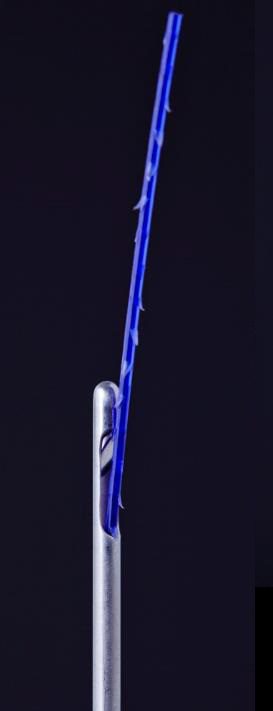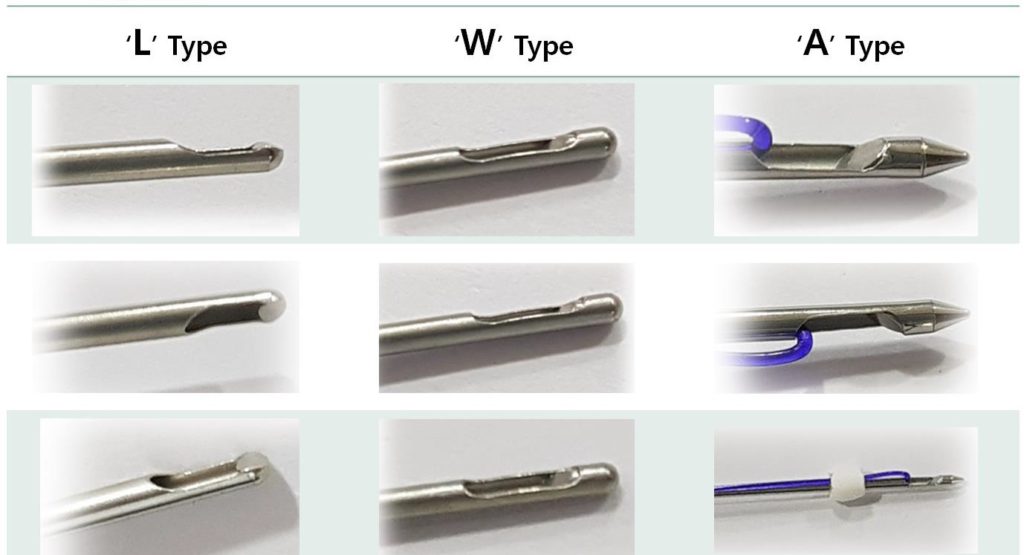 4. 針/導管長度: 以mm(毫米)作為單位,跟據針對部位的大少而設計出不同長度供醫生選擇,針/導管主要作用是帶線進入皮膚底層。