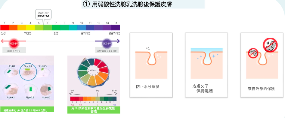- 注意產品的PH值,選擇與皮膚PH值相近的潔面乳,有助於保持皮膚的酸鹼平衡。